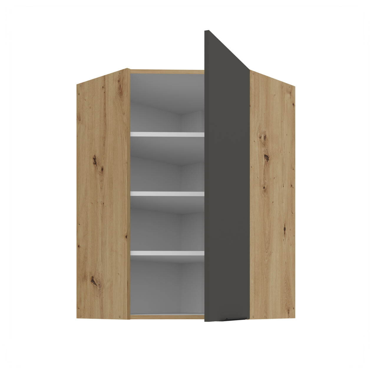 Aria graphit/artisan 60x60 GN-90 1F (45°) - Eck-Hängeschrank 60x60 cm mit einer Drehfront und drei Einlegeböden.