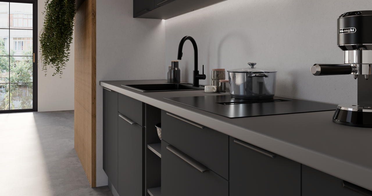 ✔ Farbkombination aus einem Korpus in Anthrazit und Fronten in Schwarz,