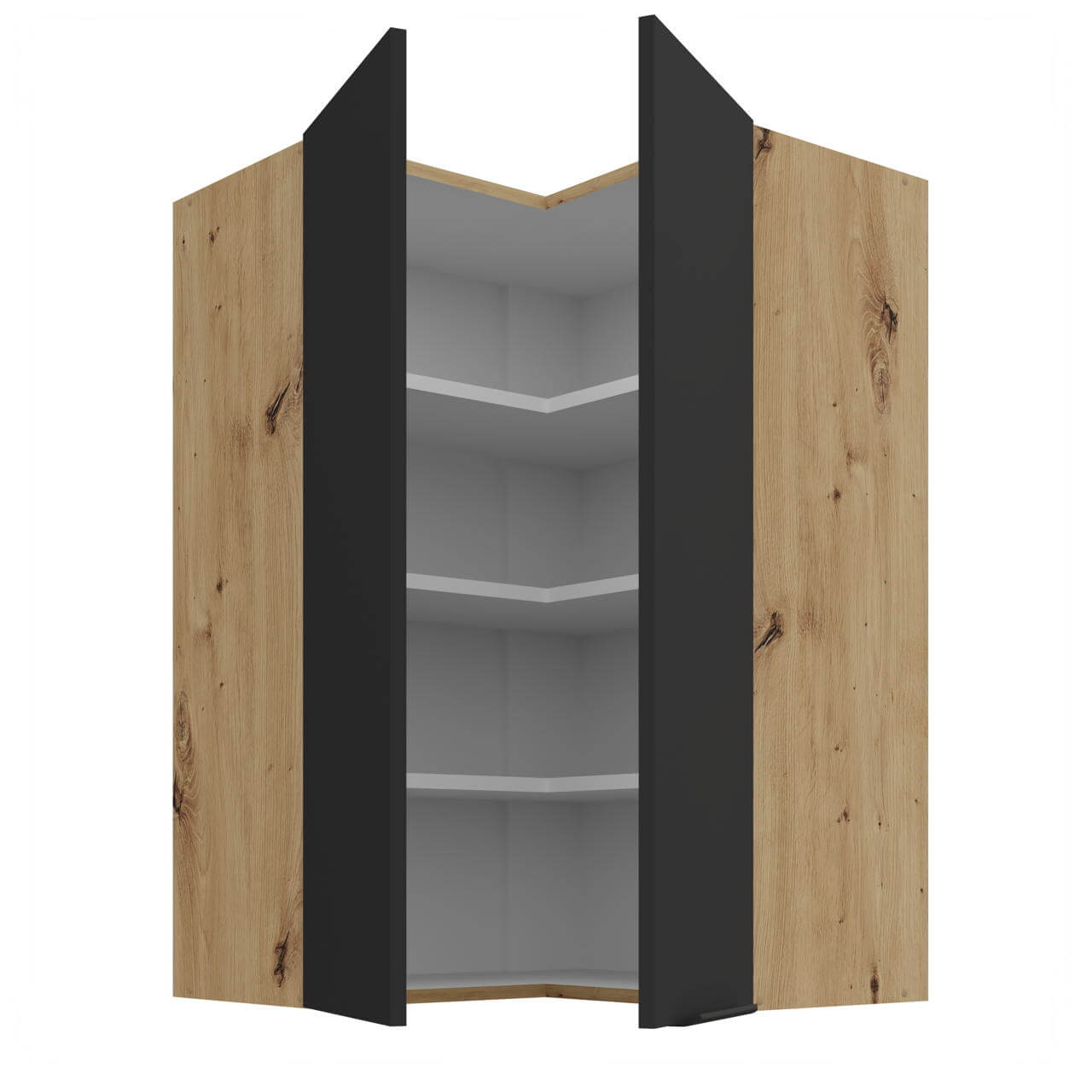 Aria schwarz/artisan 60x60 GN-90 2F (90°) - Eck-Hängeschrank 60x60 cm mit zwei Drehfronten und drei Einlegeböden.