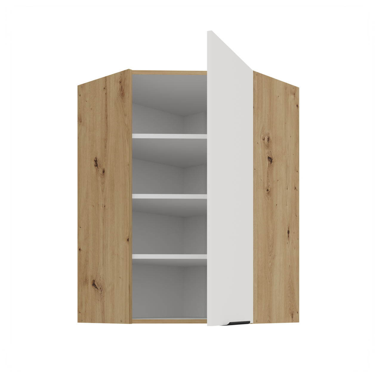 Aria weiß/artisan 60x60 GN-90 1F (45°) - Eck-Hängeschrank 60x60 cm mit einer Drehfront und drei Einlegeböden.