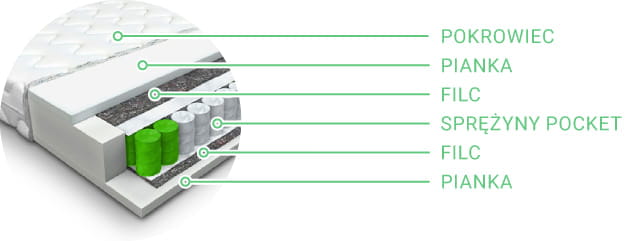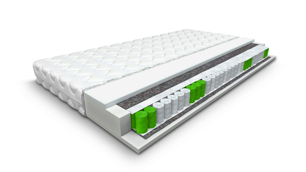 - Polsterauflage (Filz) - trennt die Federschicht von der Schaumschicht, versteift und verstärkt die gesamte Matratzenstruktur.