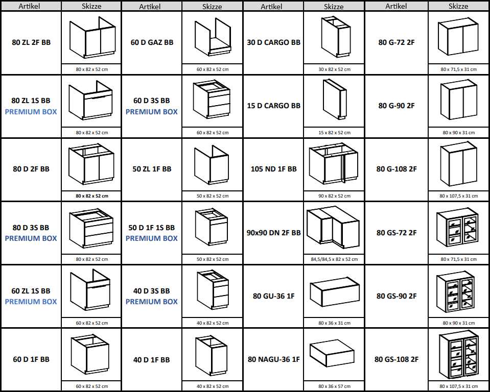 - die Vielzahl der modularen Küchenschränke ermöglicht jede beliebige Konfiguration Ihrer Küche.