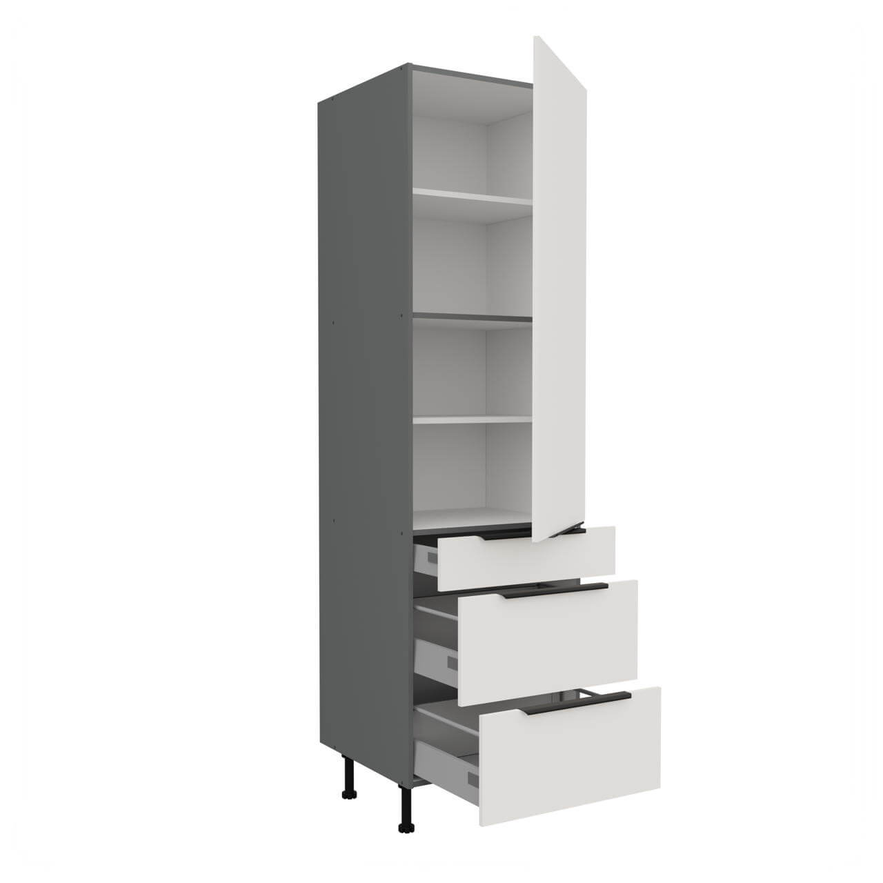 Aria weiß/anthrazit 60 DKS-210 3S 1F - Hochschrank 60 cm mit einer Drehfront und drei Schubladen.