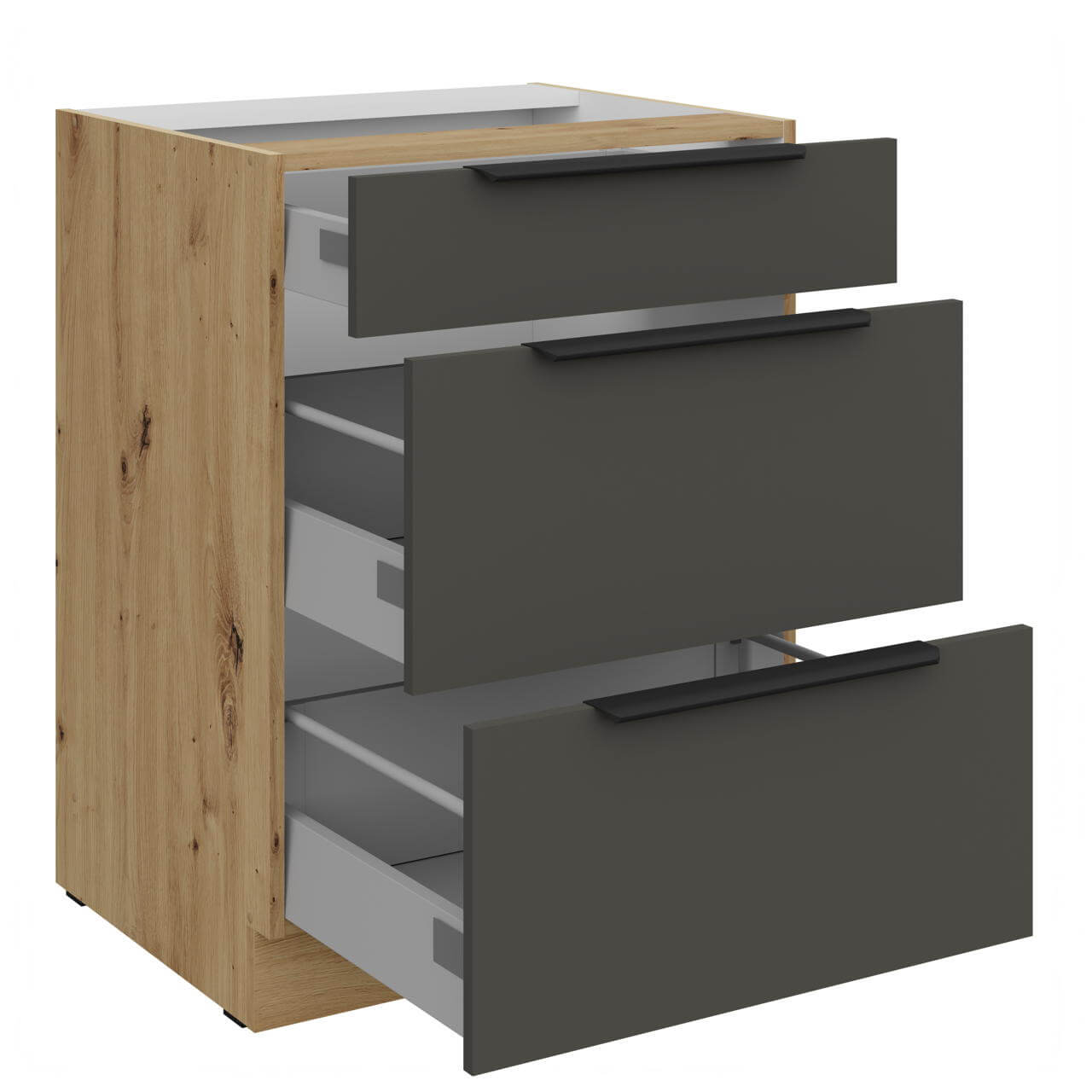 ✔ 60 D 3S BB - Unterschrank 80cm mit drei Schubladen "Premium-Box": Breite 60cm / Höhe 82cm / Tiefe 52cm,
