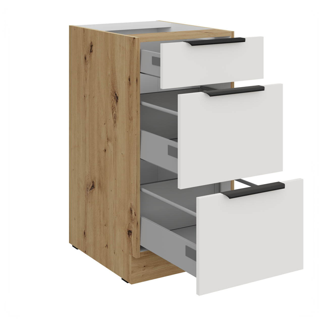 ✔ 40 D 3S BB - Unterschrank 80cm mit drei Schubladen "Premium-Box": Breite 40cm / Höhe 82cm / Tiefe 52cm,