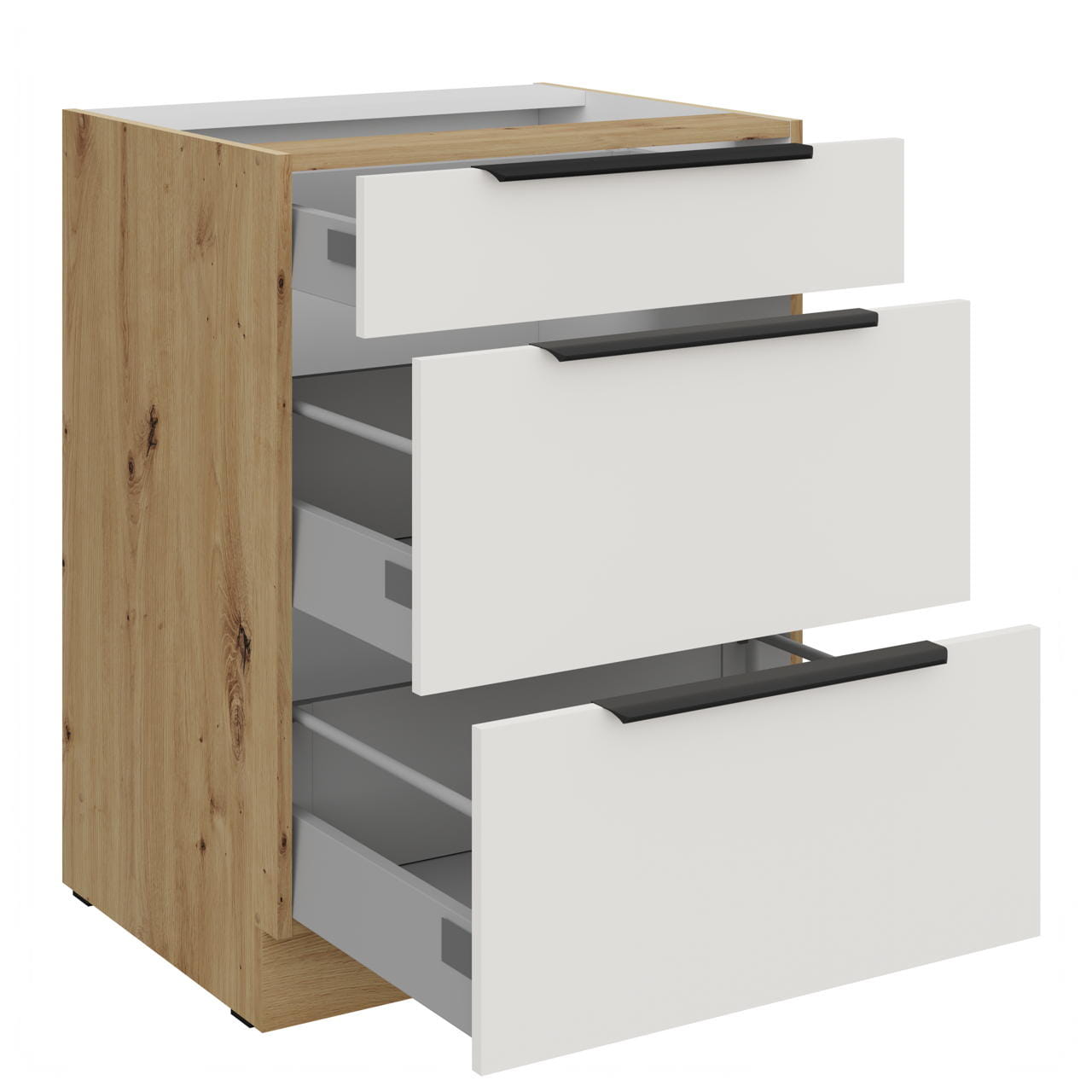 ✔ 60 D 3S BB - Unterschrank 80cm mit drei Schubladen "Premium-Box": Breite 60cm / Höhe 82cm / Tiefe 52cm,