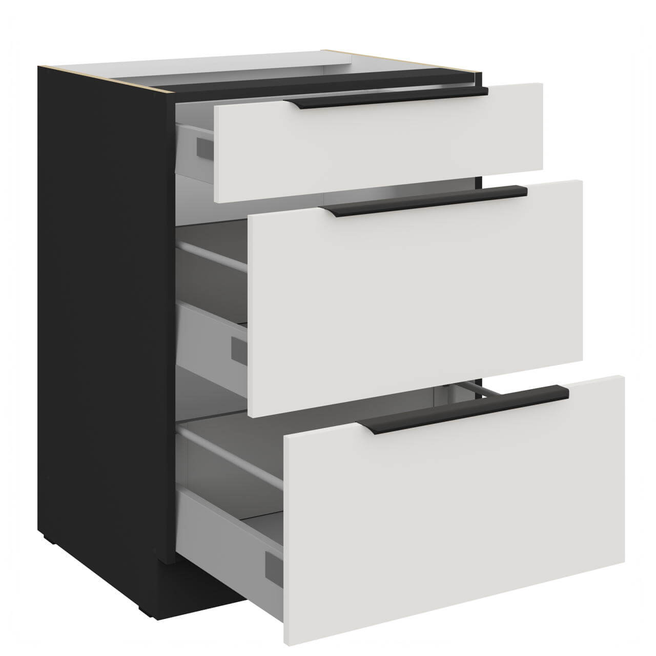 ✔ 60 D 3S BB - Unterschrank 60cm mit drei Schubladen "Premium-Box": Breite 60cm / Höhe 82cm / Tiefe 52cm,