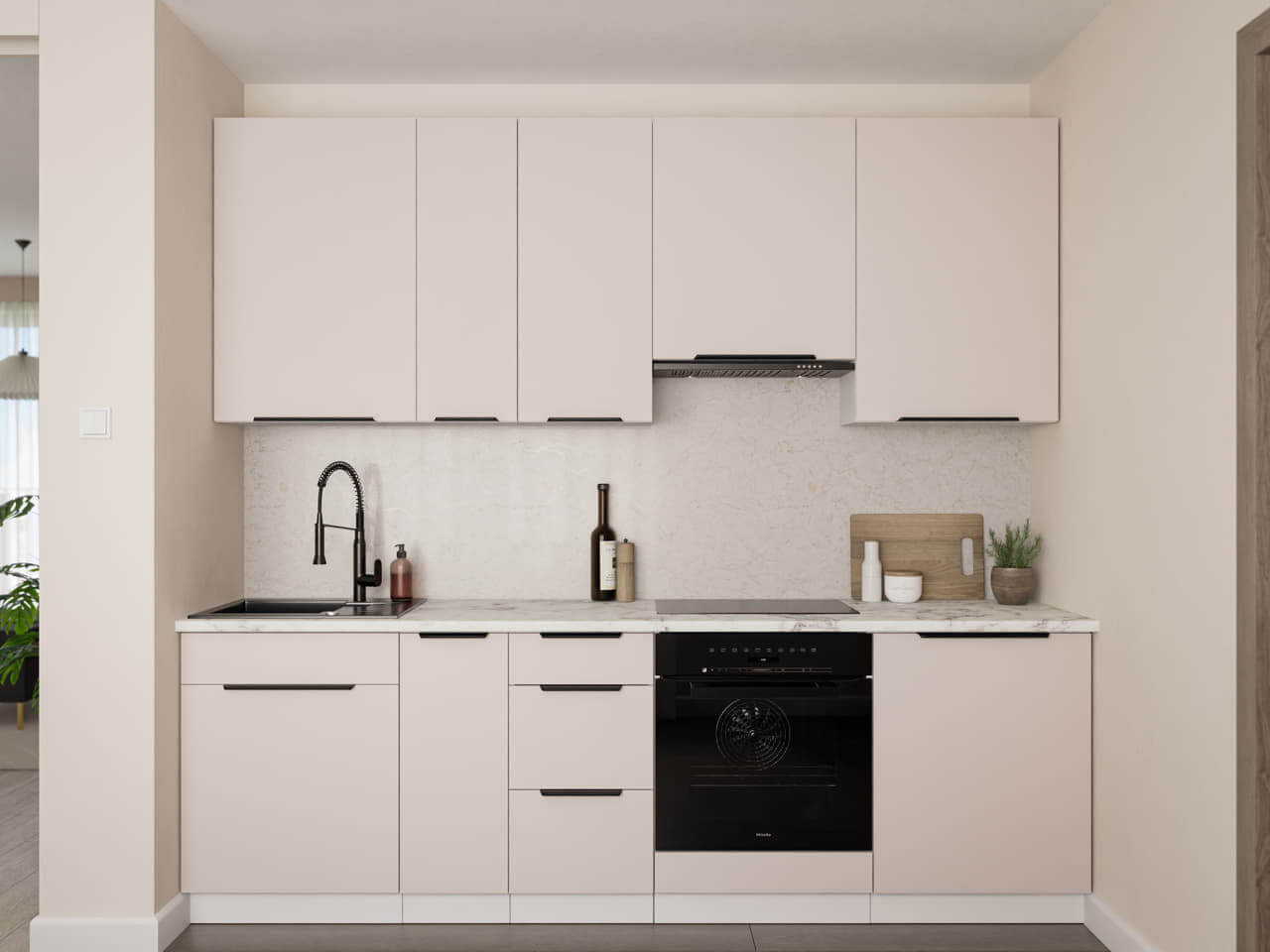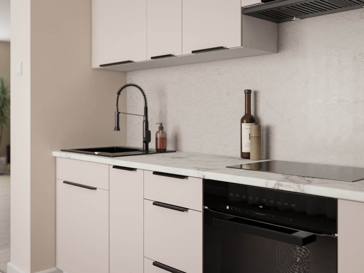 Die Küchenkollektion Como ist eine harmonische Verbindung aus dezenter Eleganz und moderner Funktionalität. Die weißen Korpusse verleihen dem Raum Leichtigkeit und Frische und bilden den perfekten Hintergrund für die stilvollen Fronten in Kaschmir-Optik. Dieser zarte, warme Farbton verleiht der Küche einen gemütlichen Charakter und bewahrt gleichzeitig ihr minimalistisches und zeitloses Erscheinungsbild.