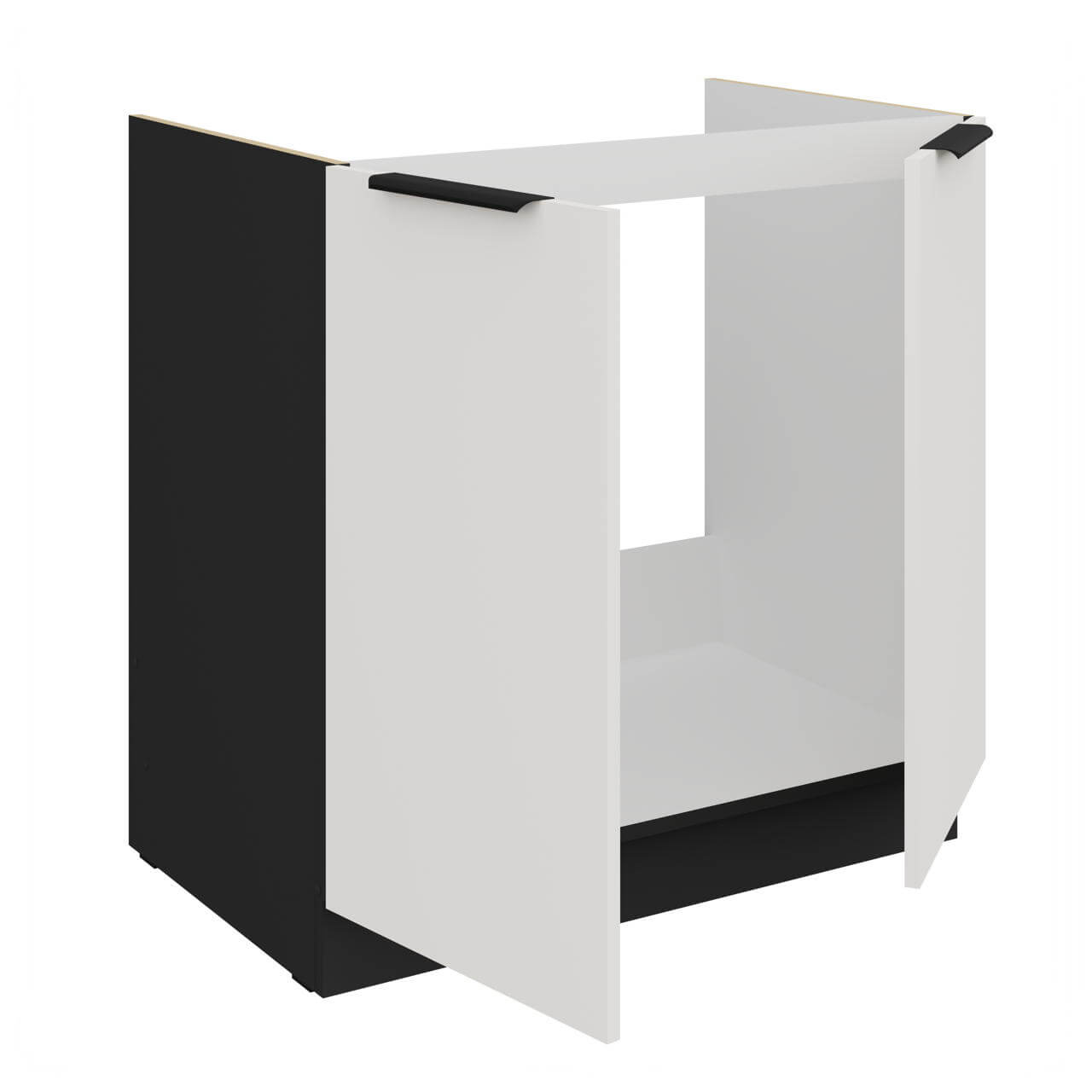 Aria weiß/schwarz 80 ZL 2F BB - Spülenunterschrank 80cm mit zwei Drehfronten.