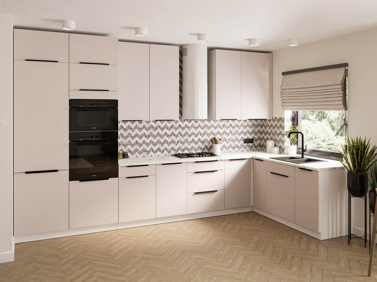 Die Küchenkollektion Como ist eine harmonische Verbindung aus dezenter Eleganz und moderner Funktionalität. Die weißen Korpusse verleihen dem Raum Leichtigkeit und Frische und bilden den perfekten Hintergrund für die stilvollen Fronten in Kaschmir-Optik. Dieser zarte, warme Farbton verleiht der Küche einen gemütlichen Charakter und bewahrt gleichzeitig ihr minimalistisches und zeitloses Erscheinungsbild.