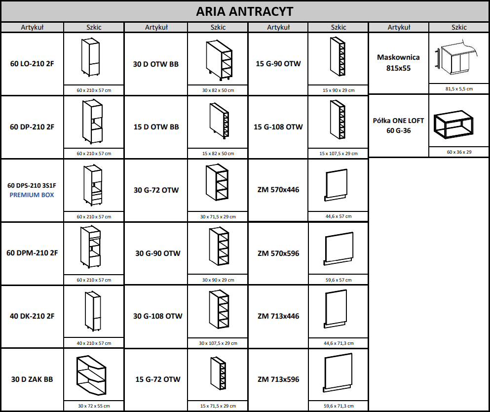 Alle verfügbaren Küchenschränke aus der Aria-Kollektion: