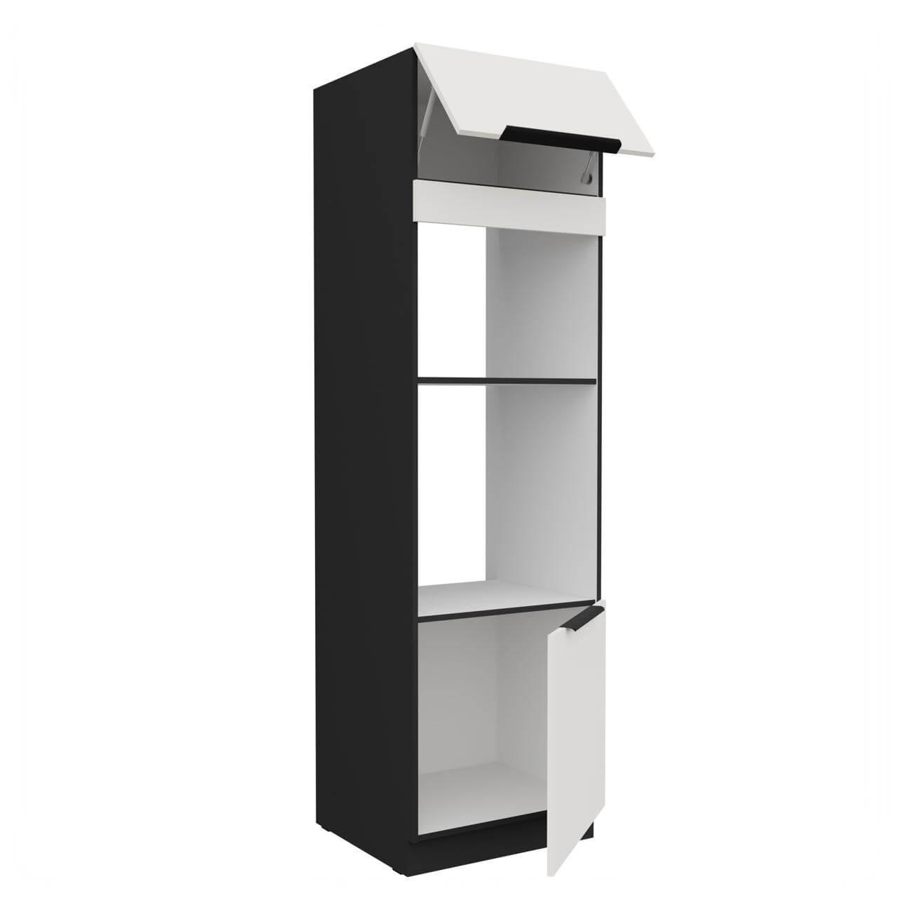 Aria weiß/schwarz 60 DPM-210 2F - Umbauschrank für Backofen und Mikrowelle 60cm mit einer Drehfront und einer Klapptür.