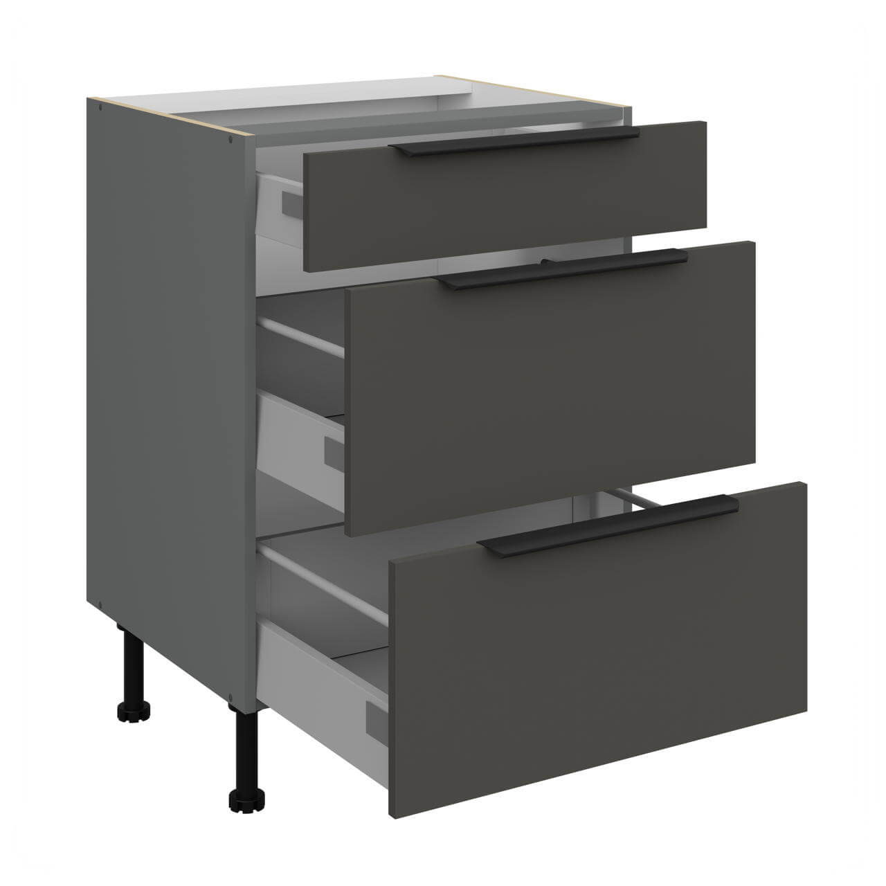 Aria graphit/anthrazit 60 D 3S BB - Unterschrank 60cm mit drei Schubladen.