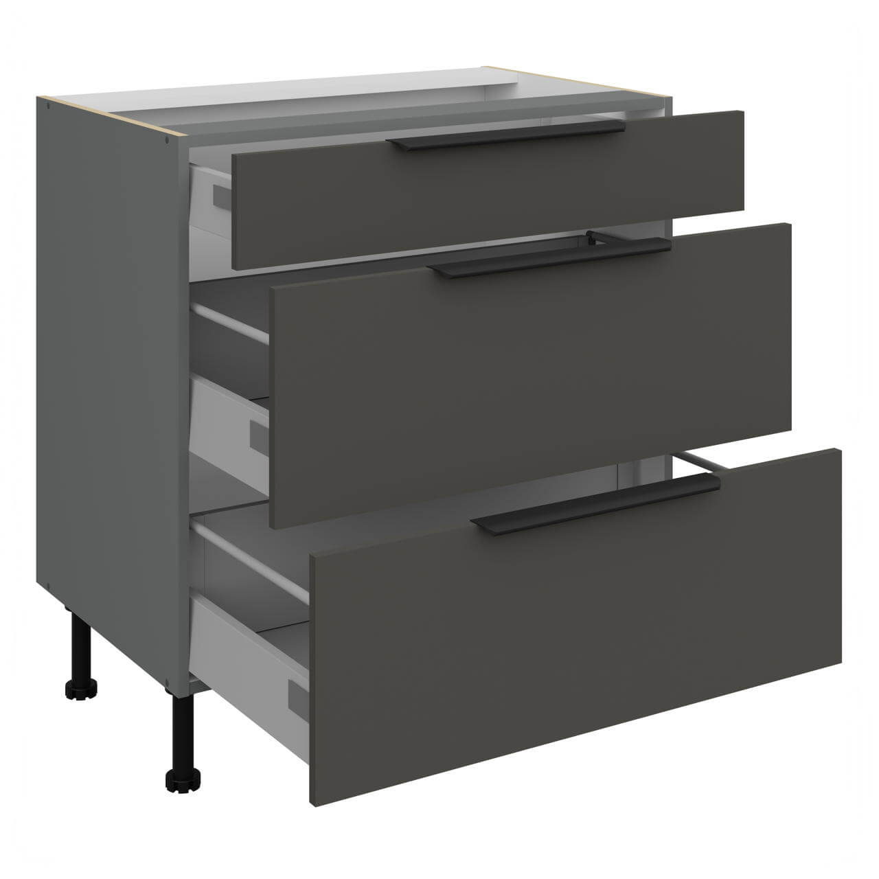 Aria graphit/anthrazit 80 D 3S BB - Unterschrank 80cm mit drei Schubladen.