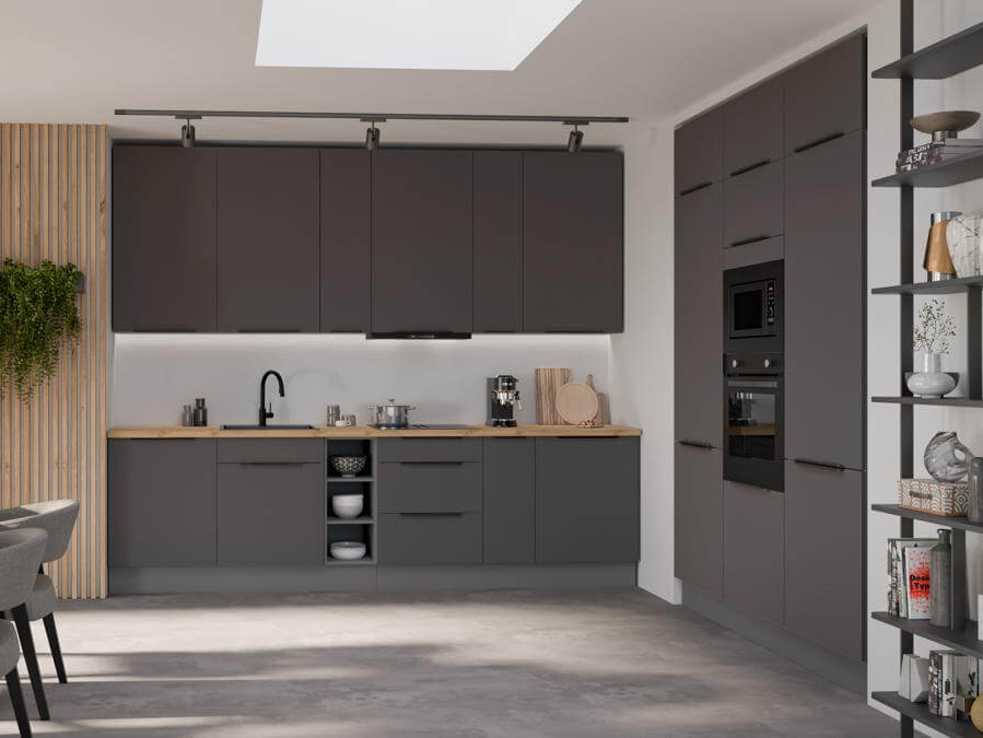 ✔ Farbkombination aus einem Korpus in Anthrazit und Fronten in Graphit,