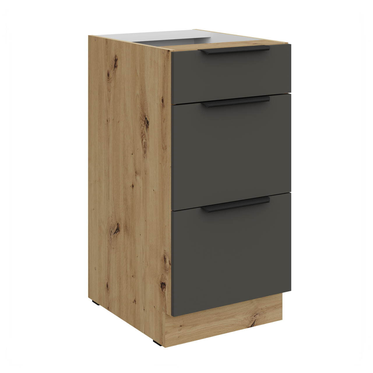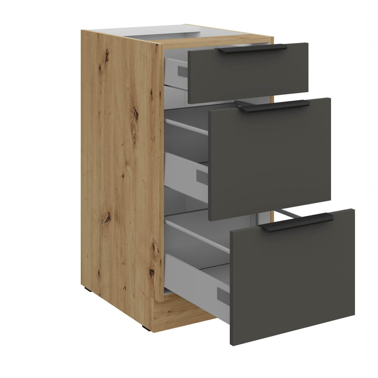Aria grafit/artisan 40 D 3S BB - Unterschrank 40cm mit drei Schubladen.