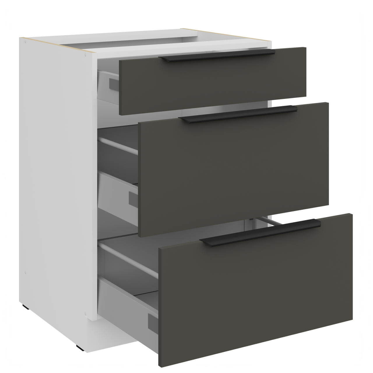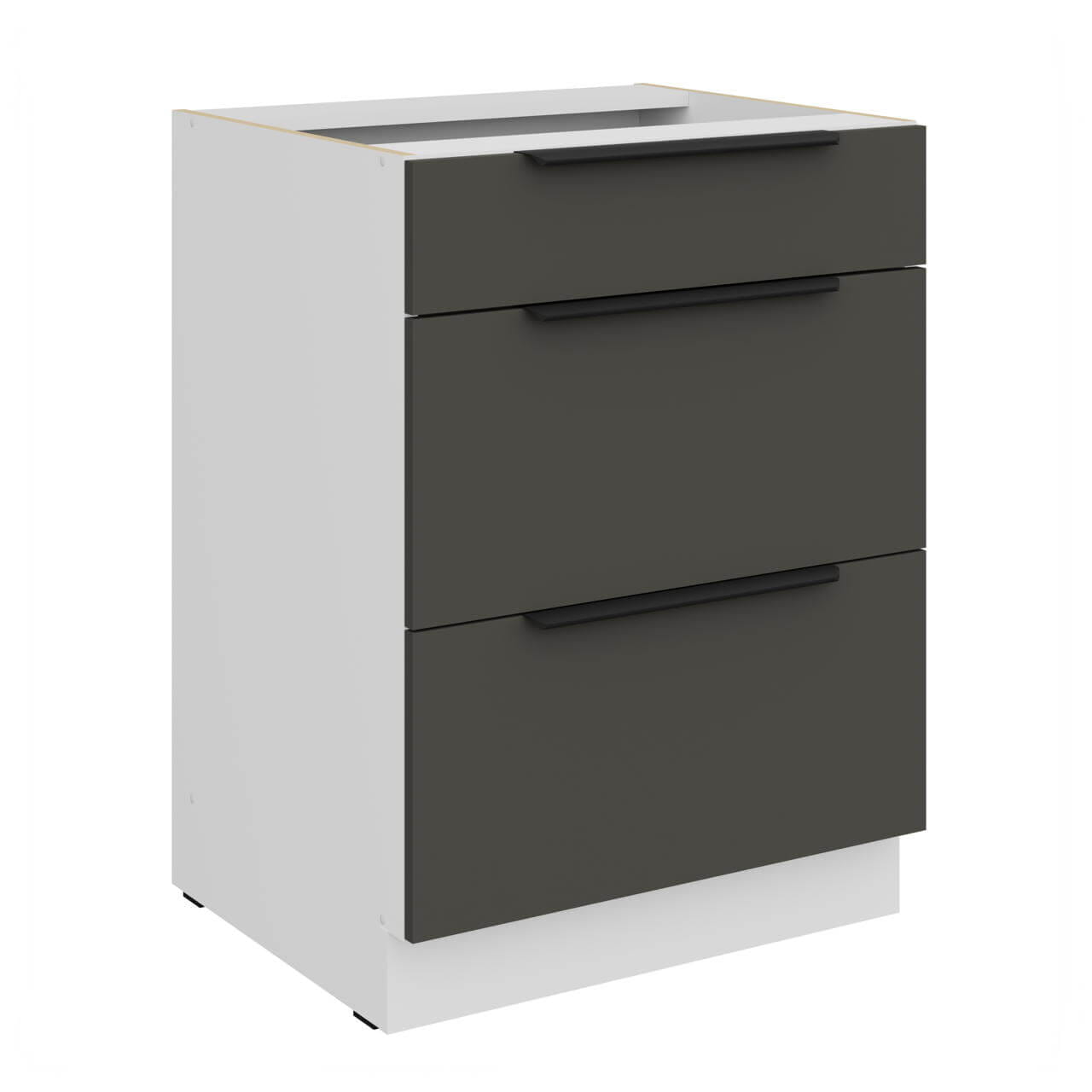 Aria graphit/weiß 60 D 3S BB - Unterschrank 60cm mit drei Schubladen.