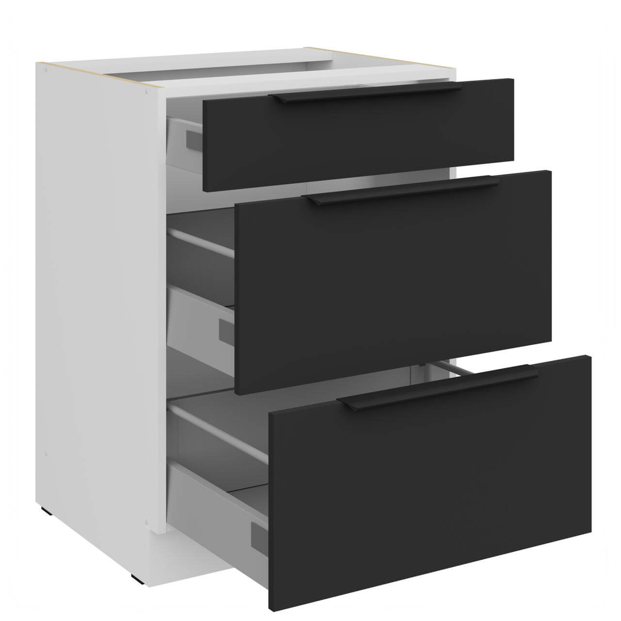 Aria schwarz/weiß 60 D 3S BB - Unterschrank 60cm mit drei Schubladen.