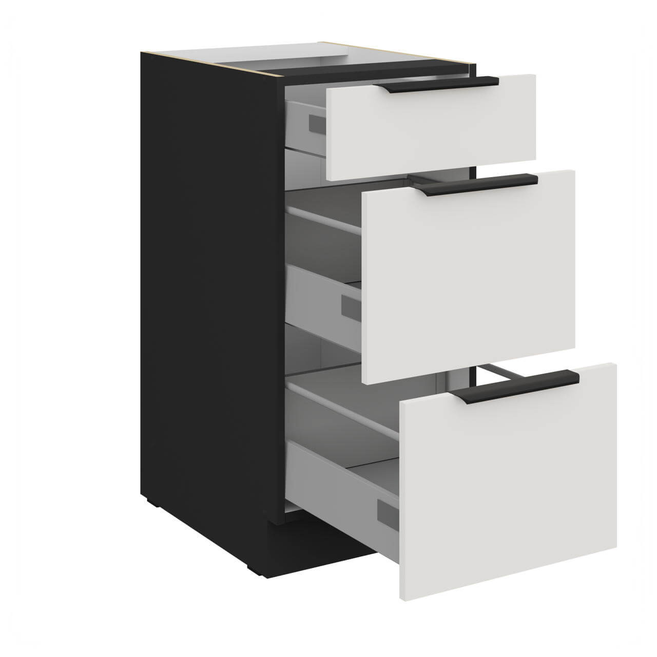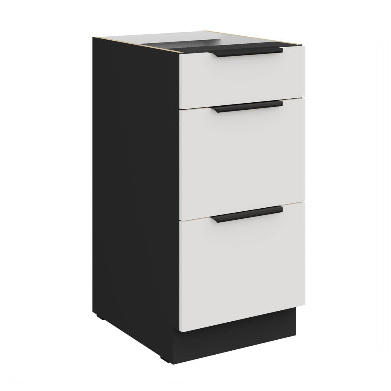 Unterschrank weiß/schwarz 40 D 3S BB - Unterschrank 40cm mit drei Schubladen.