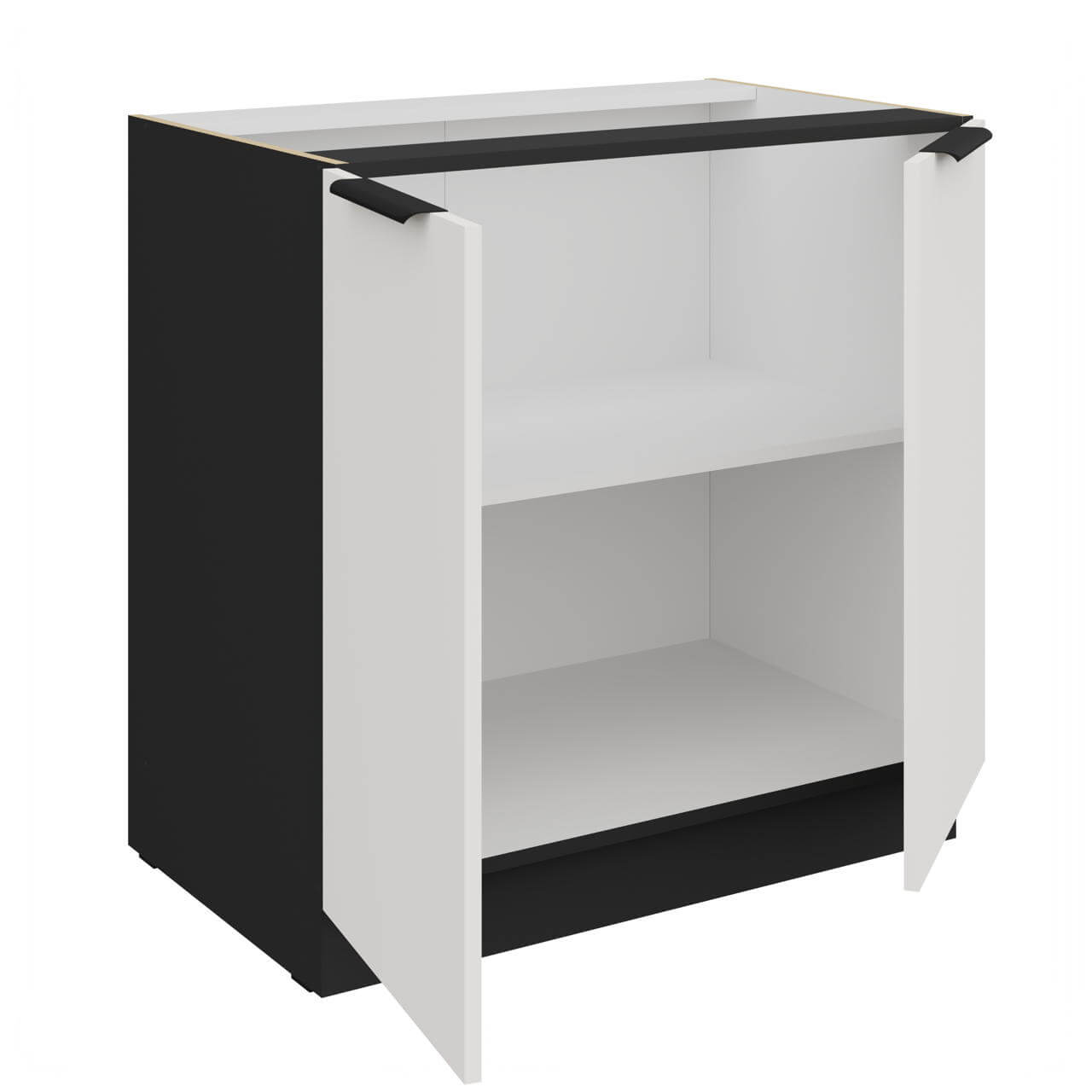 Aria weiß/schwarz 80 D 2F BB - Unterschrank 80cm mit zwei Drehfronten und einem Einlegeboden.
