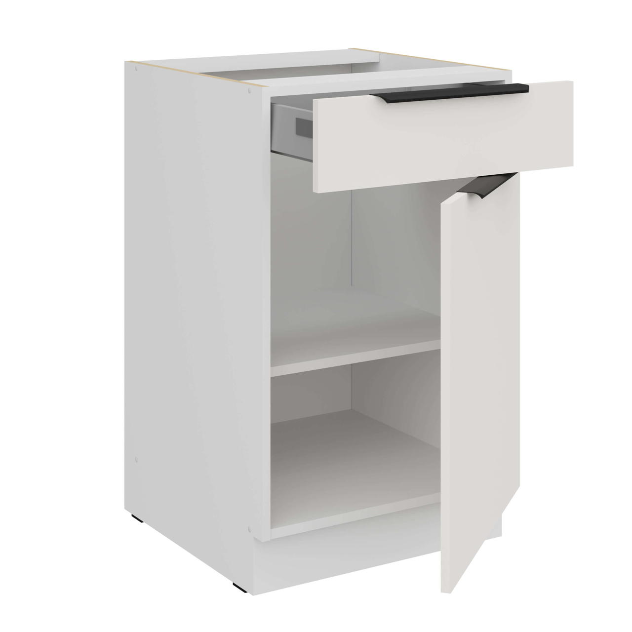 Aria weiß/weiß 50 D 1F 1S BB - Unterschrank 50cm mit einer Drehfront und Schublade.